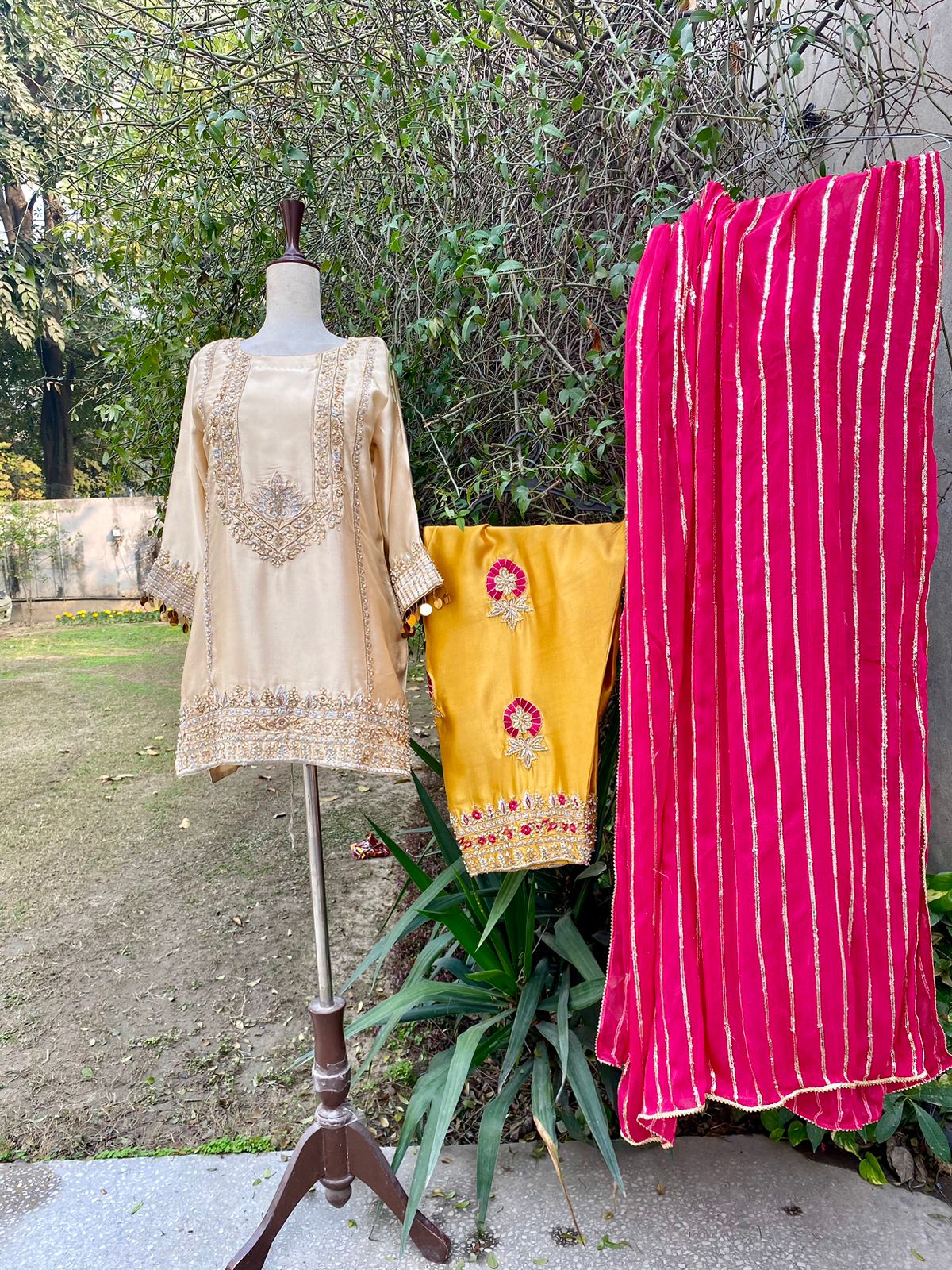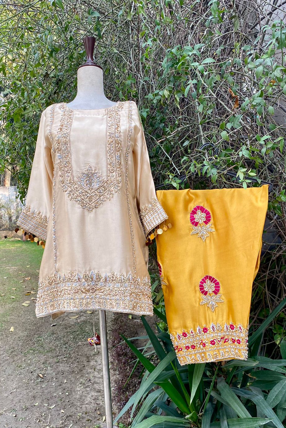 3–4 weeks from the date of purchase. A measurement form will be shared after order confirmation. Size and color can be customized.