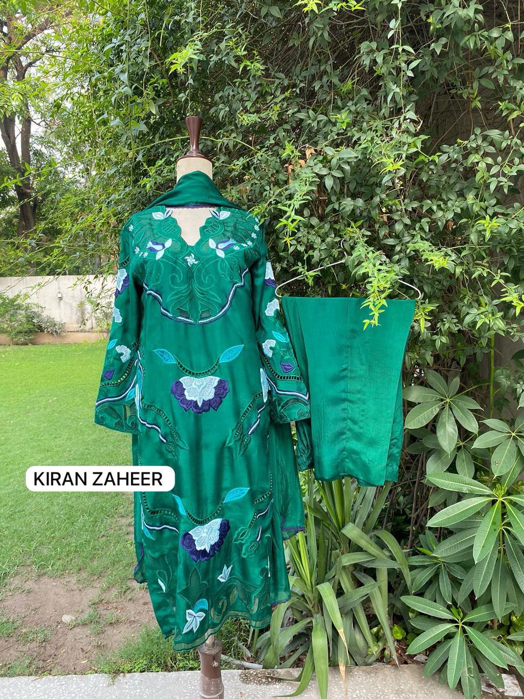 Discover the perfect blend of tradition and elegance with this stunning Emerald Green Tussar Silk ensemble. This three-piece collection features a beautifully stitched shirt and trouser set adorned with intricate tonal embroidery that captures attention and admiration. The accompanying dupatta adds a graceful finishing touch, offering endless styling possibilities for weddings, celebrations, and special occasions.